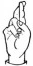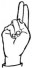На ћирилици написано ХРАНИМИР РАДИВОЈЕВИЋ састоји се из 19 слова [?]. Исписано ћириличном једноручном азбуком за глувонеме:
